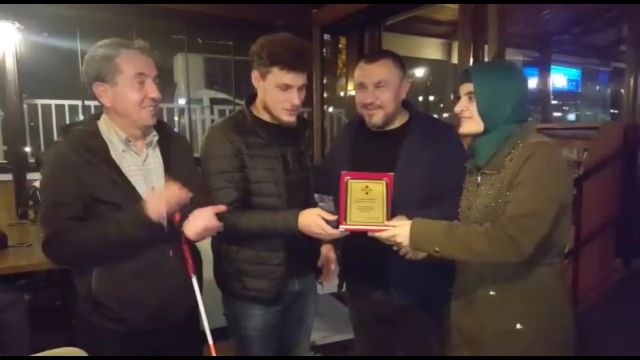 Öğretmen Evi Müdürü Mehmet Ali Erçelik'e plaket taktim ettik.![]() Goalball takımlarımız ile Eskişehir Öğretmen Evinde akşam yemeğinde buluştuk.Kaıdn ve erkek goalball takımlarımızın en genç oyuncuları Sultan Karayağız ile Sinan Koç Öğretmen Evi Müdürü Mehmet Ali Erçelik'e plaket taktim ettiler. |